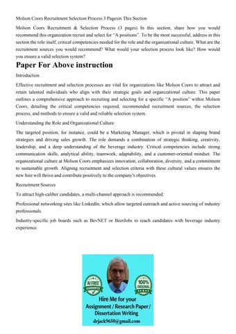 Molson Coors Recruitment Selection Process 3 Pagesin This Se
