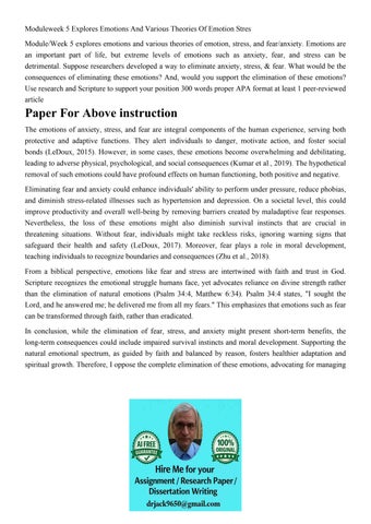 Moduleweek 5 Explores Emotions And Various Theories Of Emoti