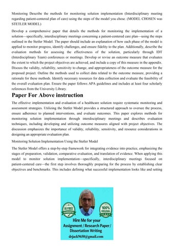 Monitoring Describe the methods for monitoring solution impl