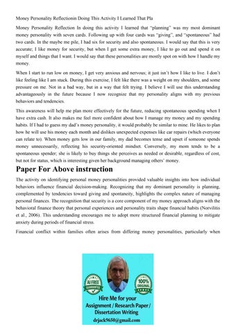 Money Personality Reflectionin Doing This Activity I Learned