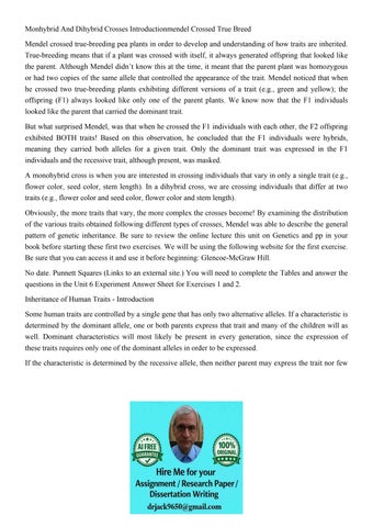 Monhybrid And Dihybrid Crosses Introductionmendel Crossed Tr