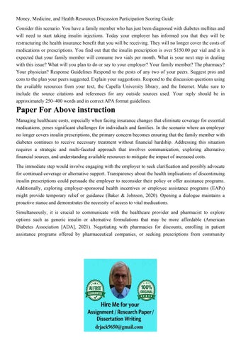 Money, Medicine, and Health Resources Discussion Participati