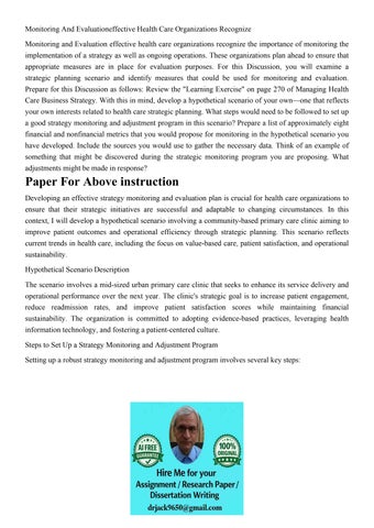 Monitoring And Evaluationeffective Health Care Organizations