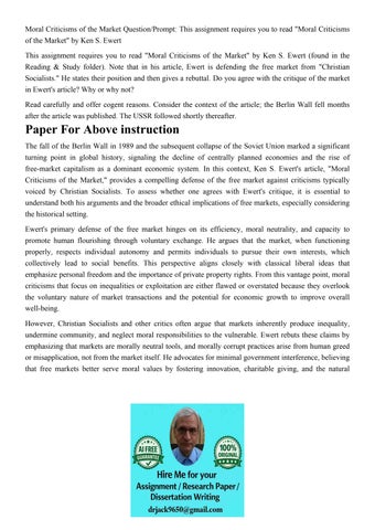 Moral Criticisms of the Market Question/Prompt: This assignm