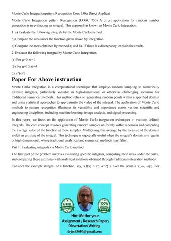 Monte Carlo Integrationpattern Recognition Cosc 750a Direct