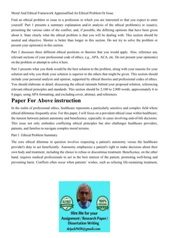 Moral And Ethical Framework Appraisalfind An Ethical Problem