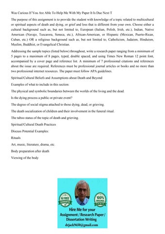 Was Curious If You Are Able To Help Me With My Paper It Is D