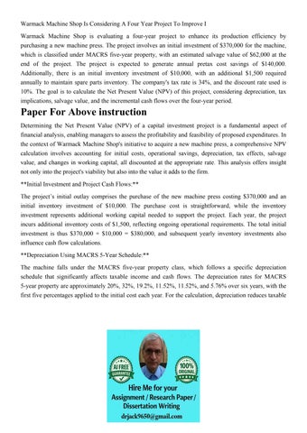 Warmack Machine Shop Is Considering A Four Year Project To I