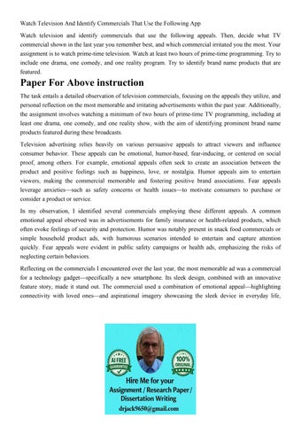 Watch Television And Identify Commercials That Use the Follo