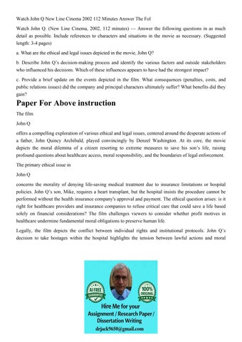 Watch John Q New Line Cinema 2002 112 Minutes Answer The Fol