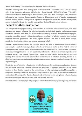 Watch The Following Video About Learning Styles Or The Lack