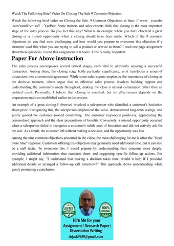 Watch The Following Brief Video On Closing The Sale 9 Common