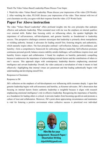 Watch The Video Values Based Leadership Please Discuss Your