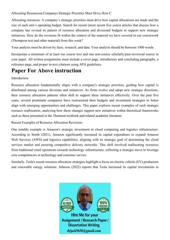 Allocating Resourcesa Companys Strategic Priorities Must Dri