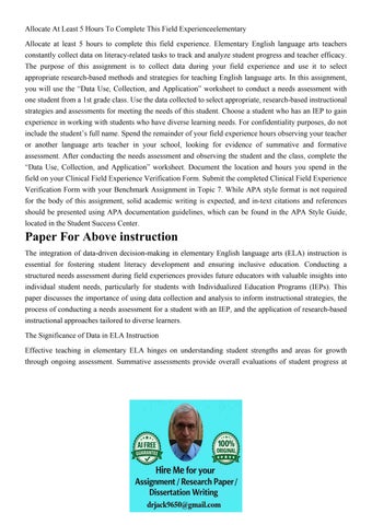 Allocate At Least 5 Hours To Complete This Field Experiencee
