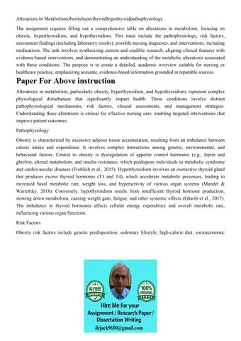 Alterations In Metabolismobesityhyperthyroidhypothyroidpatho