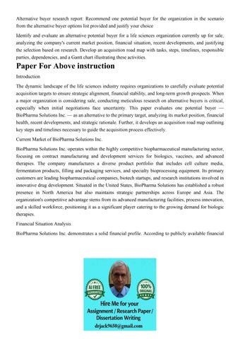 Alternative buyer research report: Recommend one potential b