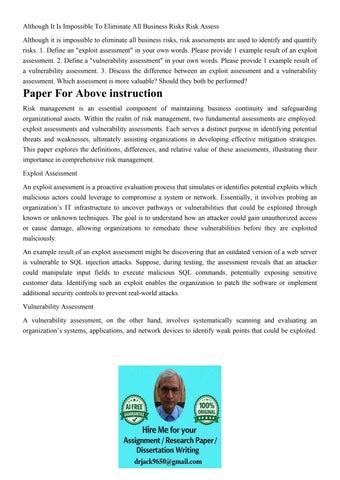 Although It Is Impossible To Eliminate All Business Risks Ri