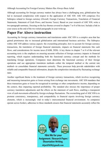 Although Accounting For Foreign Currency Matters Has Always