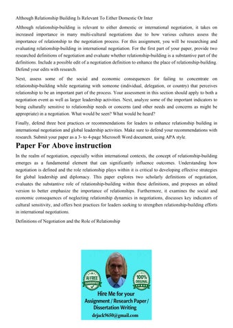 Although Relationship Building Is Relevant To Either Domesti