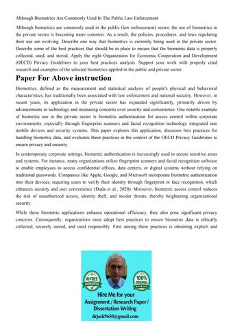 Although Biometrics Are Commonly Used In The Public Law Enfo