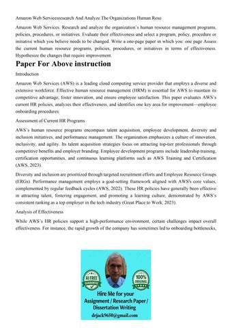 Amazon Web Servicesresearch And Analyze The Organizations Hu