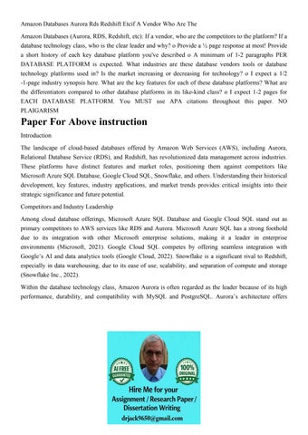 Amazon Databases Aurora Rds Redshift Etcif A Vendor Who Are