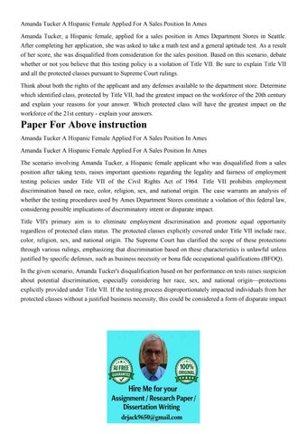 Amanda Tucker A Hispanic Female Applied For A Sales Position