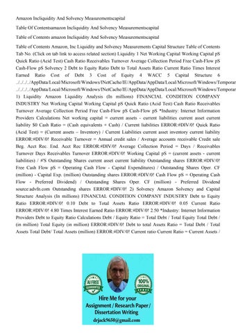 Amazon Incliquidity And Solvency Measurementscapital Table O