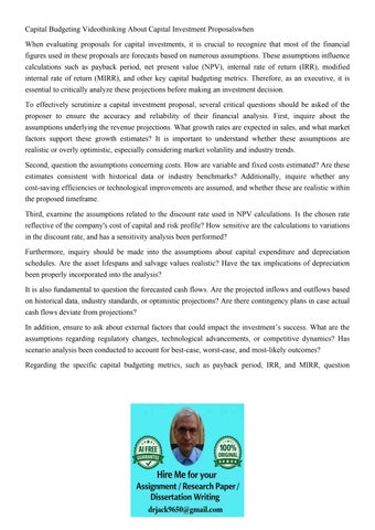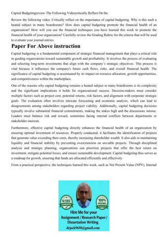Capital Budgetingreview The Following Videocritically Reflec
