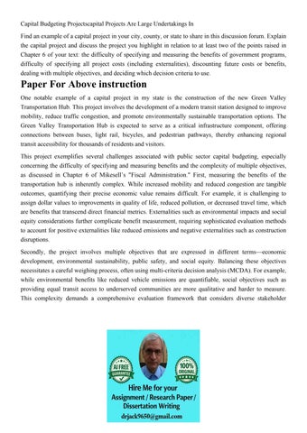 Capital Budgeting Projectscapital Projects Are Large Underta
