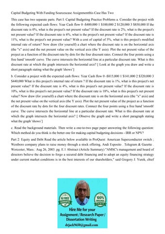 Capital Budgeting With Funding Sourcescase Assignmentthis Ca