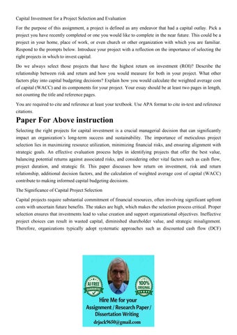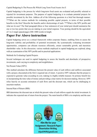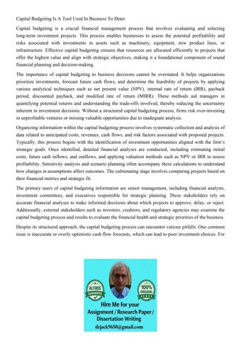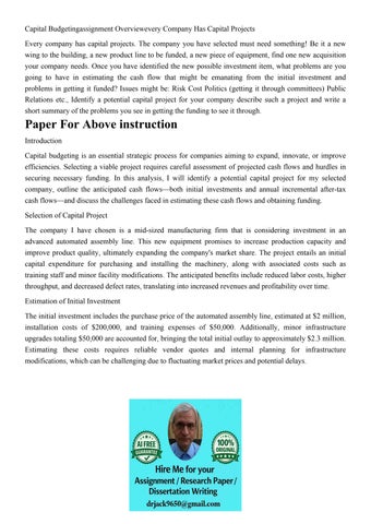 Capital Budgetingassignment Overviewevery Company Has Capita