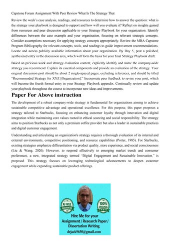 Capstone Forum Assignment With Peer Review What Is The Strat