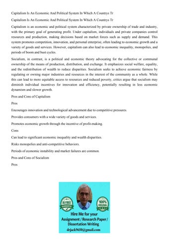 Capitalism Is An Economic And Political System In Which A Co