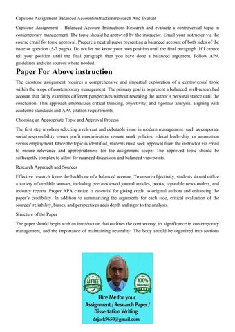 Capstone Assignment Balanced Accountinstructionsresearch And