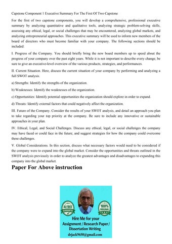 Capstone Component 1 Executive Summary For The First Of Two