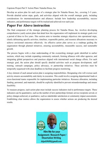 Capstone Project Part V Action Plans/ Natasha House, Inc Dev