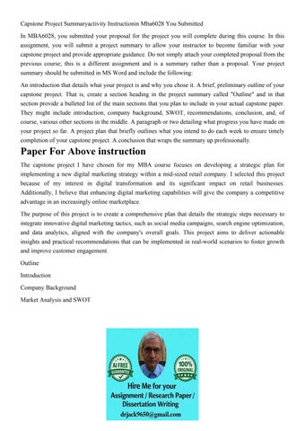 Capstone Project Summaryactivity Instructionin Mba6028 You S