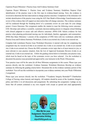 Capstone Project Milestone 1 Practice Issue And Evidence Sum