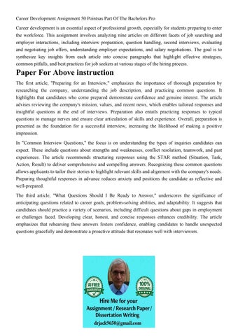 Career Development Assignment 50 Pointsas Part Of The Bachel