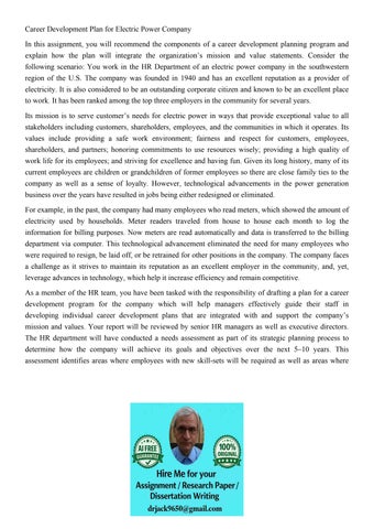 Career Development Plan for Electric Power Company In this a