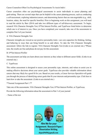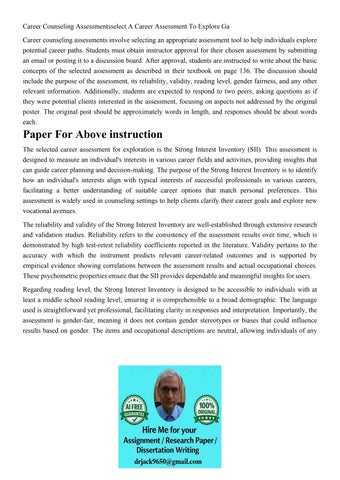 Career Counseling Assessmentsselect A Career Assessment To E