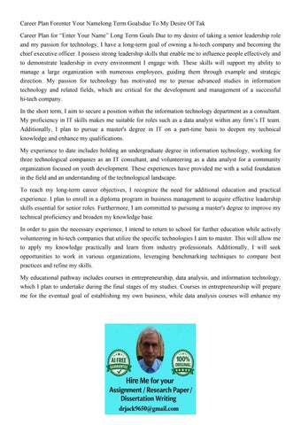 Career Plan Forenter Your Namelong Term Goalsdue To My Desir