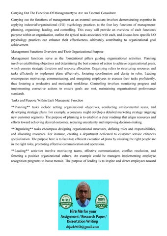 Carrying Out The Functions Of Managementyou Are An External