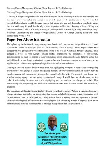 Carrying Change Management With Me Please Respond To The Fol