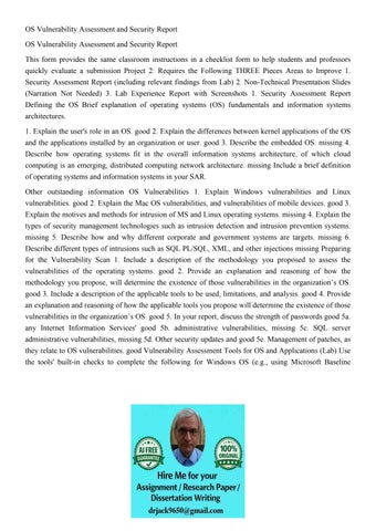 OS Vulnerability Assessment and Security Report OS Vulnerabi