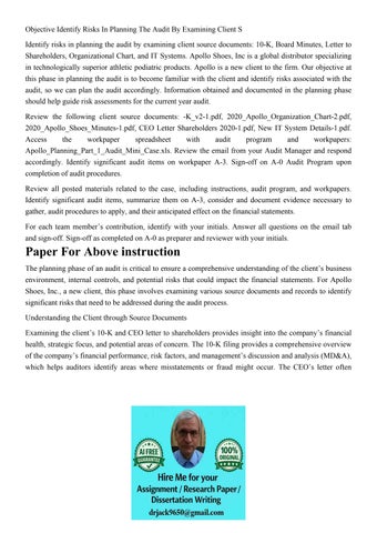 Objective Identify Risks In Planning The Audit By Examining