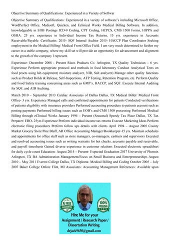 Objective Summary of Qualifications: Experienced in a Variet