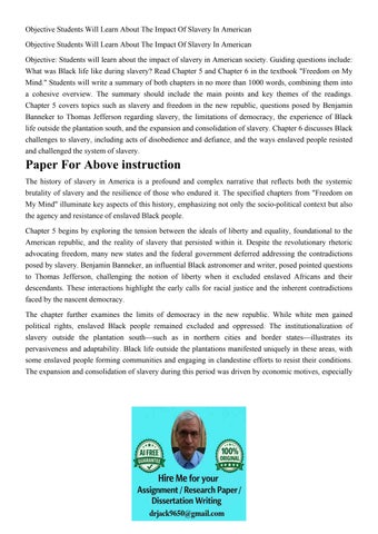 Objective Students Will Learn About The Impact Of Slavery In